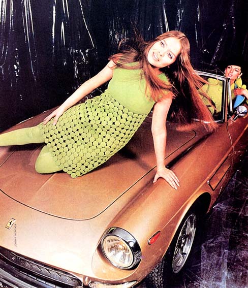 Manifesto della mostra La grande svolta anni '60 miniabito da cocktail in lana verde di Renato Balestra del 1967