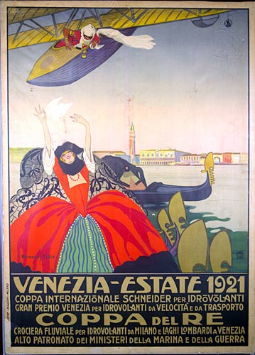 Emma Bonazzi (Bologna, 1881 - ivi, 1959) 1921 Venezia - Estate 1921 Coppa internazionale Schneider per idrovolanti [...] Coppa del Re Crociera fluviale Litografia a colori Officine Baroni - Milano 1345 x 950 mm