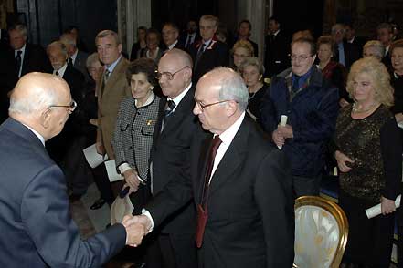 Il Presidente della Repubblica Giorgio Napolitano con Fausto Bertinotti, Presidente della Camera insieme ad alcuni dei decorati in occasione del giorno del Ricordo(dal sito quirinale.it)