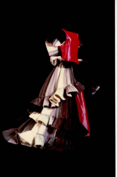 Abiti di haute couture che superano il concetto tradizionale di confezione di sartoria e si trasformano in vere e proprie sculture, dove stoffa e colore hanno una valenza unica. Opere celebrate in tutto il mondo.