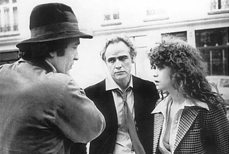 Marlon Brando sul set di Ultimo tango a Parigi, di Bernardo Bertolucci, con Romy Schneieder |