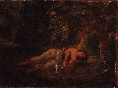 Eugène Delacroix, La morte di Ofelia, (Amleto, IV, 7, 167-84), 1853, olio su tela, cm 23 x 30,5. Credito fotografico: Parigi, © foto RMN, Arnaudet
